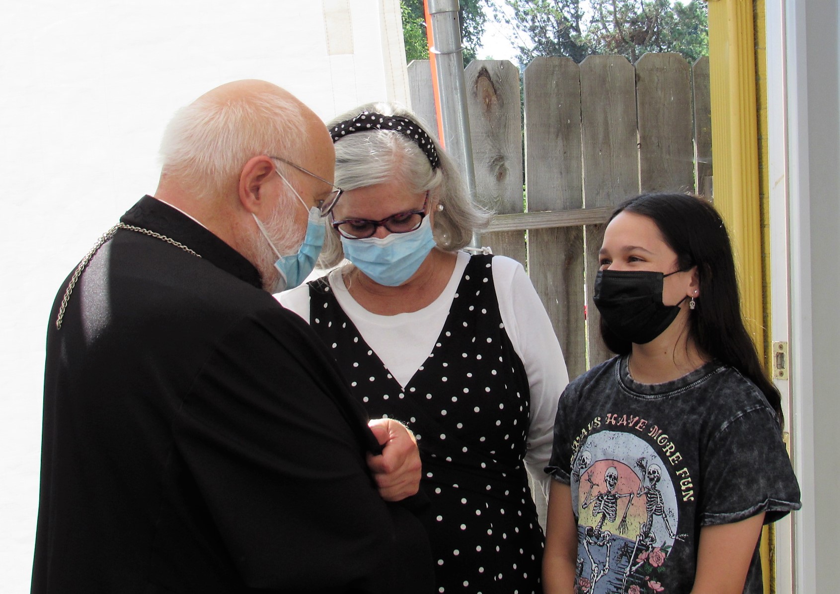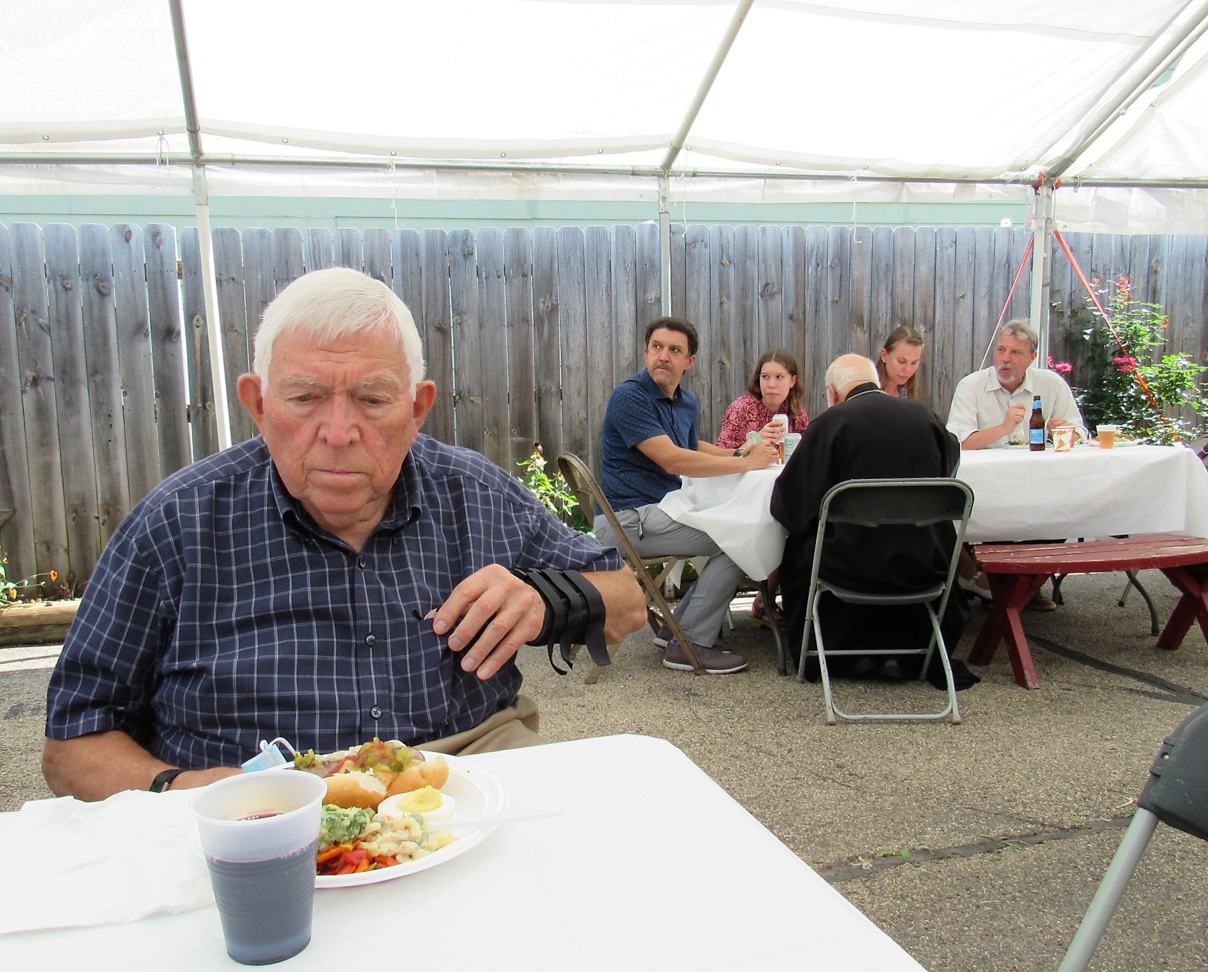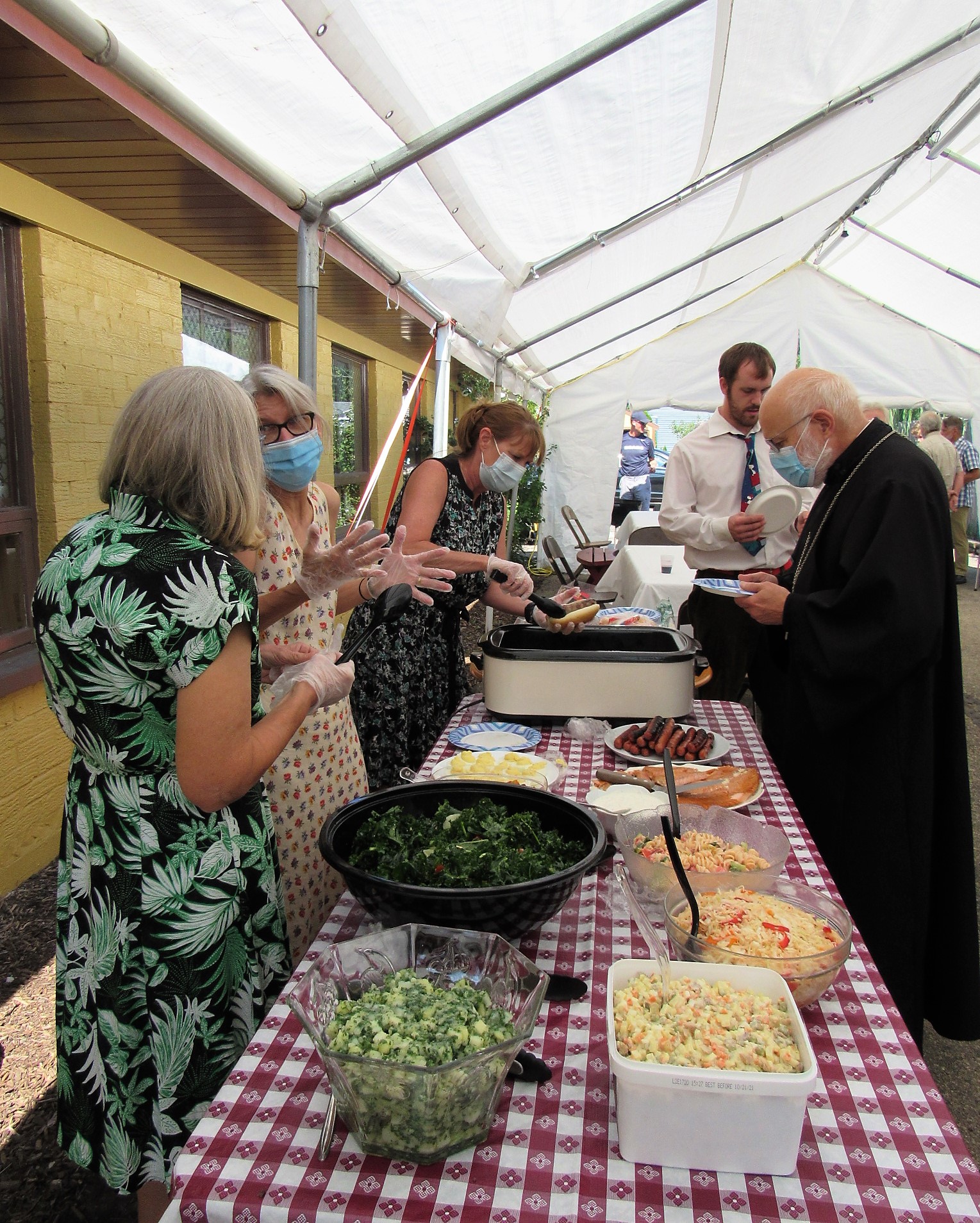 After the Divine Liturgy, we enjoyed a time of social gathering with gorgeous weather and delicious food provided by all, including fresh fish caught by our catechumen Timothy.