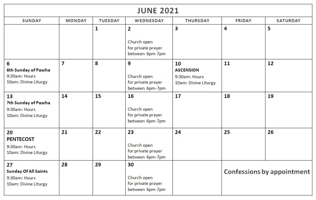 June 2021 schedule